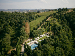 Die private Kapelle, die im späten 18. Jahrhundert errichtet wurde, erinnert nicht nur an die Zeiten der Renaissance und die Herrschaft der Medici Familie, sie bietet auch die einmalige Atmosphäre für eine Trauung im Kreis der Liebsten. Im Gegensatz zu den von Paola Navone im zeitgenössischen Stil designten 50 Zimmern und Suiten, die genügend Platz für die Hochzeitsgesellschaft bieten, schmücken historischen Fresken und Gemälde, das Familienwappen sowie ein schlichter Altar die San Michele Kapelle. Nach dem Ringtausch feiern die frisch Vermählten im Park unter Zypressen und Pinien inmitten der weißen Florentiner Rosen oder auf der Panoramaterrasse mit Blick auf Weinreben und Olivenhaine. Außerdem warten italienische Kreationen des Sternekochs Giovanni Luca di Pirro auf die Hochzeitsgäste, die im Herbst von den eigens gesammelten Trüffeln und italienischen Kräutern aus dem Schlossgarten dominiert werden – Liebe geht schließlich durch den Magen.