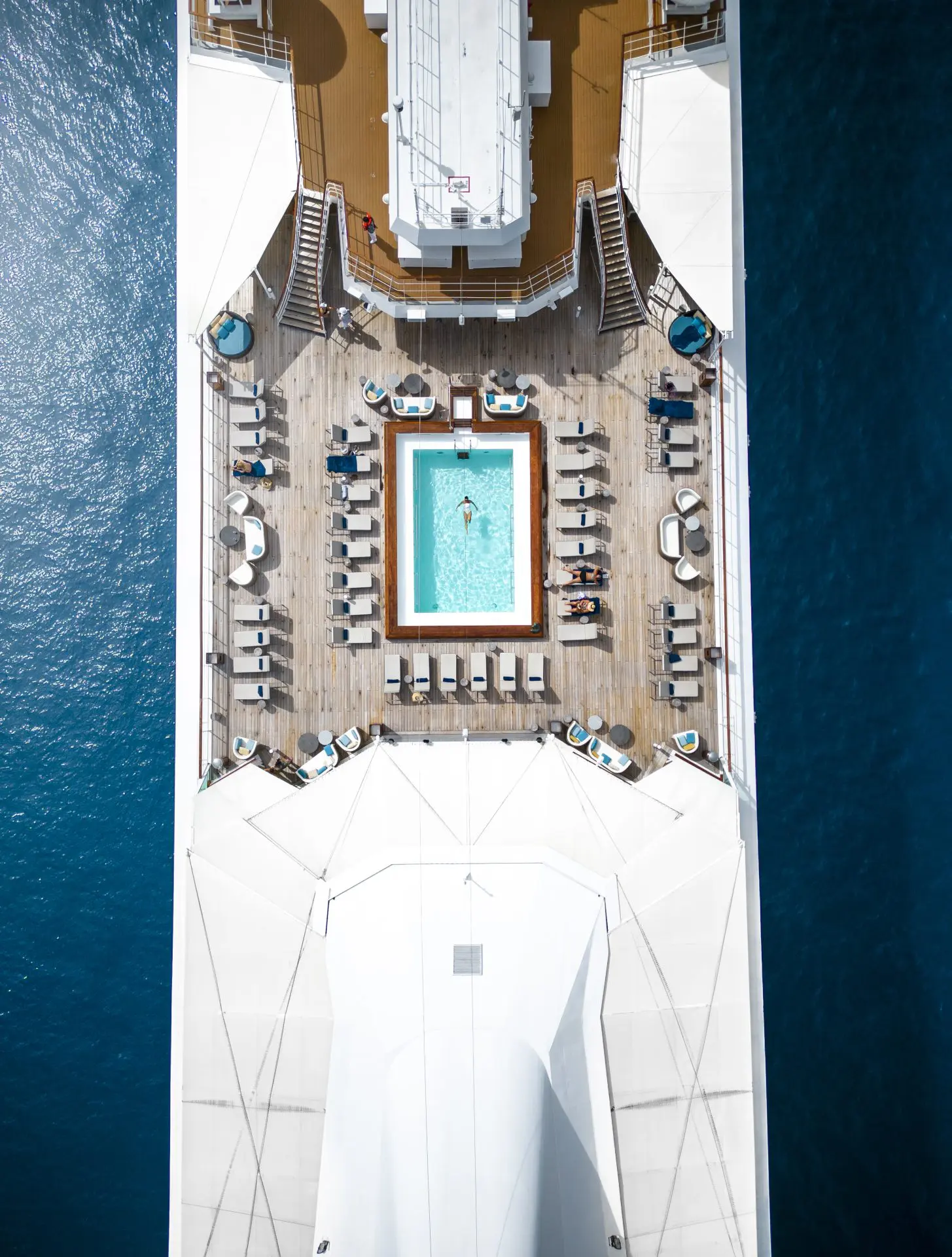 Genießen Sie die Annehmlichkeiten des Schiffes und entspannen einen sonnigen Tag mit exzellentem Essen, einen Besuch im SPA und einem Sonnenbad am Pool.