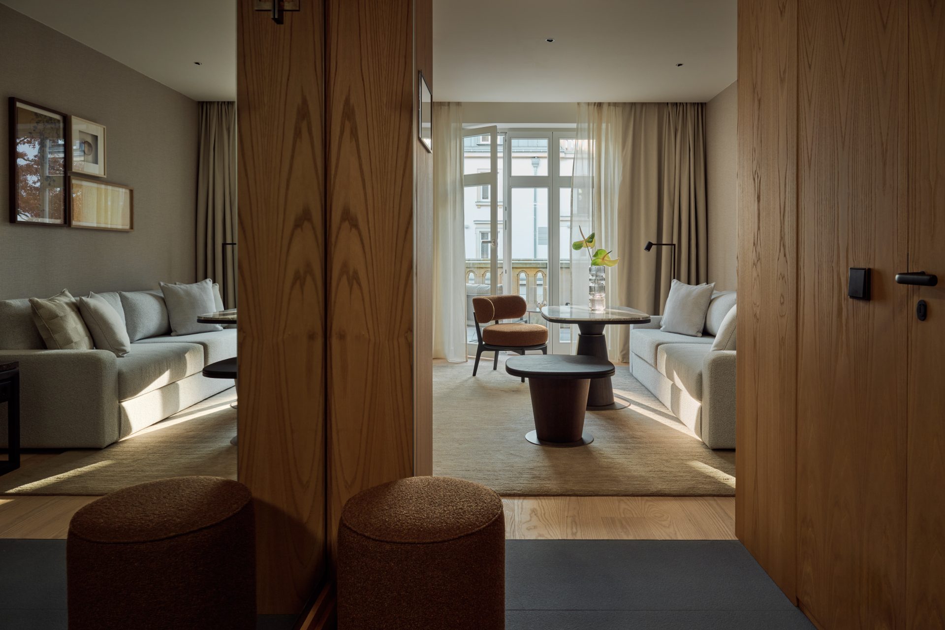 Das Hotel vereint Geschichte und Gegenwart: Der denkmalgeschützte Kern der Villa bleibt erhalten, natürliche Materialien wie Holz, Stein und Stuck treffen auf moderne Akzente. Insgesamt stehen 147 lichtdurchflutete Zimmer und Suiten zur Verfügung. Besonders hervorzuheben sind die neun Signature Suiten, die jeweils einer Persönlichkeit Frankfurts gewidmet sind und mit individuell ausgewählten Möbeln, Kunstwerken, Büchern und Materialien ausgestattet sind. Jede Suite erzählt ihre eigene Geschichte und bietet ein exklusives Rückzugsgefühl, während die Zimmer in den modernen Flügeln durch klare Linien, helle Farbtöne und natürliche Texturen eine ruhige, entspannende Atmosphäre schaffen. Weiche Stoffe, Samt, warme Holztöne und Steinflächen sorgen für ein Gefühl von Geborgenheit und Luxus, das sofort zum Verweilen einlädt.