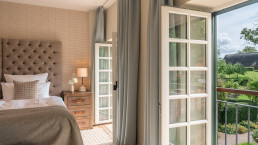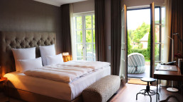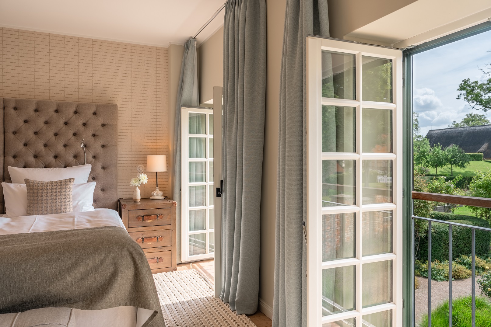 Die individuellen Suiten und Zimmer befinden sich verteilt in zehn Gebäuden auf dem Gelände und wurden mit viel Liebe zum Detail, teils nach historischem Vorbild und angelehnt an die ursprüngliche Nutzung wiederhergestellt. Alle Gebäude und jedes Zimmer sind individuelle Unikate, zum Teil mit Kamin, Terrasse oder freistehender Badewanne bieten die Unterkünfte eine besonders hohe Aufenthaltsqualität, ergänzt durch viele liebevolle Details.