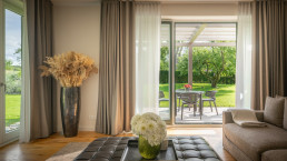 Die bis zu 150qm großen Weissenhaus Signature Suiten mit je zwei Schlafzimmern und zwei Badezimmern, bieten den Gästen den höchsten Komfort. Als exklusives Highlight bietet die größte Kategorie auf WEISSENHAUS, die Signature Villa, insgesamt Komfort für bis zu zwölf Gäste und verfügt im großzügigen Garten über eigene Jacuzzis und Saunen sowie mehrere Terrassen.