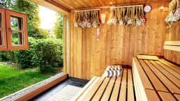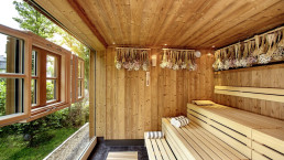 - Benutzung des Wellness- & Fitnessbereichs mit Blick in die Berge mit Panorama-Freipool, drei Saunen mit Fernsicht unterm Dachstuhl sowie Relaxraum „unter den Sternen“