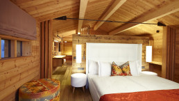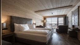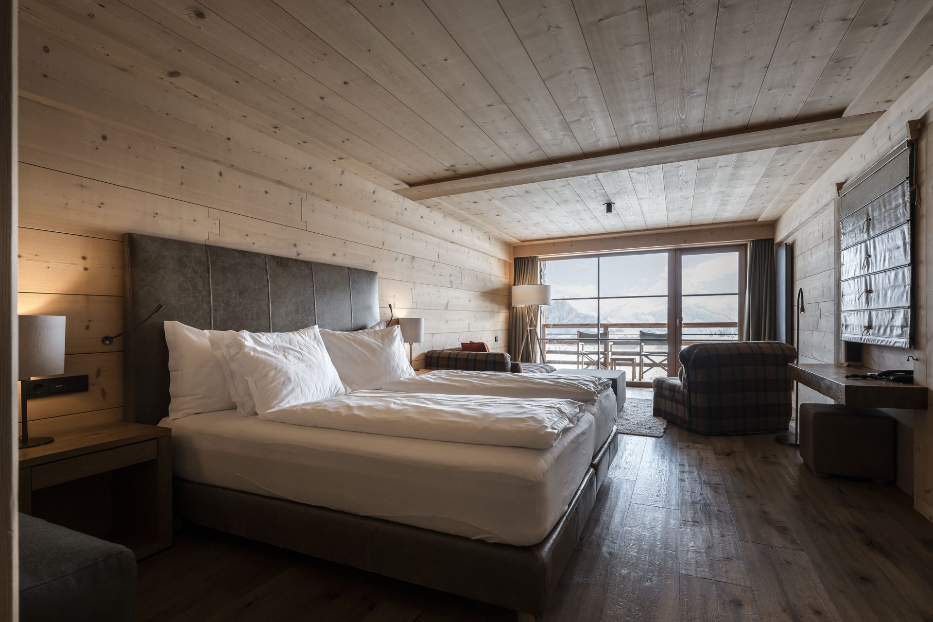 Die stilvollen Zimmer und Suiten verbinden alpinen Charme mit zeitloser Eleganz und bieten Rückzugsorte mit Blick auf die umliegende Bergwelt. Warme Materialien, großzügige Räume und viel Licht unterstreichen das Gefühl von Geborgenheit und Leichtigkeit.