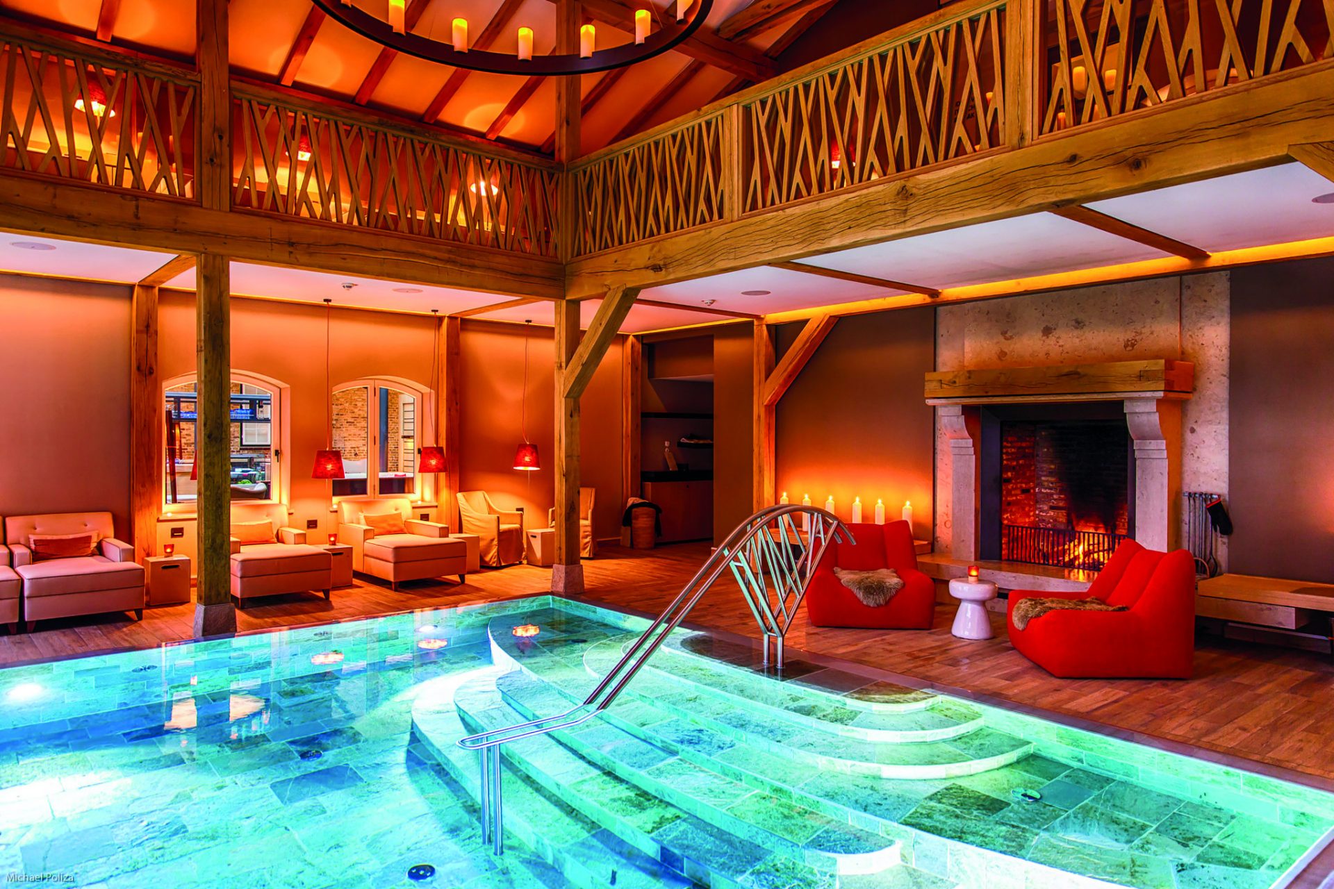 Entspannung auf höchstem Niveau finden Sie in der 3.000 m² großen SCHLOSSTHERME mit beheiztem Innen- und Außenpool, Sole Pool unter freiem Himmel, Hamam & Rasul, 6 Saunen, privatem Spa, mehreren offenen Holzkaminen, Aktiv Loft und Yoga Pavillon. Auf dem Plateau über dem Poolbereich erwartet Sie der neu errichtete Solewaldraum, mit Teestation, Panoramasauna und einer Salz-Aerosol Lounge.