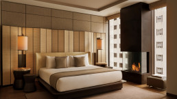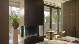 Von der Lobby aus, welche mit doppelter Höhe im 14. Stock liegt, gelangen Sie zu den Suiten und Homes. Hier wird Design großgeschrieben – alle Suiten sind mit Kaminen ausgestattet und gehören zu den größten Suiten der Stadt.