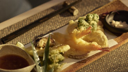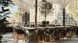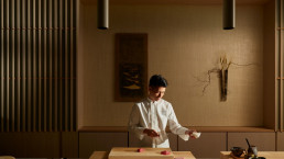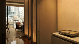 Tresen mit sieben Plätzen Omakase-Gerichte nach Wahl des Küchenchefs. Die ganzjährig geöffnete Gartenterrasse mit versenkbarem Dach, Feuerstellen und Wasserspielen ist das Ziel für ganztägige Drinks und originelle Cocktails. Nach Einbruch der Dunkelheit ist der unterirdische Jazz Club die erste Adresse in Midtown für Live-Musik.
