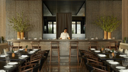 Das ganztägig geöffnete Arva, das gesellige italienische Restaurant des Aman, hat sich ganz auf die „cucina del raccolto“ (Ernteküche) spezialisiert. Die Zutaten stammen von lokalen Bauernhöfen und Märkten. Das zweite Restaurant, Nama, serviert an einem Hinoki-Holz-