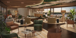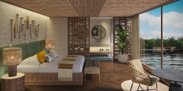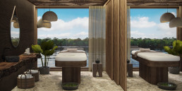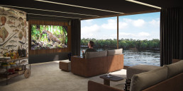 Für Momente der Ruhe und Entdeckung folgt der Explorer dem Lauf des Flusses. Regenwald-Texturen und Shipibo-inspirierte Muster verankern Sie in der Landschaft, während bodentiefe Fenster den Wald in seinem stetigen Wandel einrahmen. Das River Retreat mit Pool und Panorama-Lounge, Spa, Fitnessbereich und die elegante Lounge bieten perfekte Rückzugsorte und Ausblicke auf den Regenwald und seine Tierwelt.