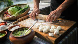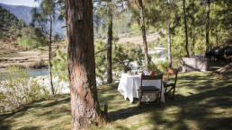Genießen Sie Ihr Mittag oder Abendessen heute im Schatten der Pinien direkt am Fluss, es wird Ihnen ein privates BBQ serviert und Sie entspannen sich bei dem Blick auf Reisfelder und den Berggipfel. Am Nachmittag haben Sie die Chance sich beim Bogenschießen auszuprobieren, Bhutans Nationalsport, oder nehmen Sie an einem Kochkurs teil, bei welchem Sie lernen Momos herzustellen, die traditionelle Dumplings.