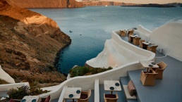 Santorin bildet den fulminanten Abschluss dieser Reise – dramatisch, erhaben, einzigartig. Das Mystique Hotel thront hoch über der Caldera, wo Weiß und Ocker sich von der tiefblauen Vulkanbucht abheben. Hier trifft man sich zum Sundowner mit Blick auf das offene Meer, bevor abends die Aromen der Inselküche in eleganten Menüs neu interpretiert werden. Jedes Detail – vom perfekt temperierten Wein bis zum handverlesenen Salz – ist Teil einer leisen, luxuriösen Perfektion.