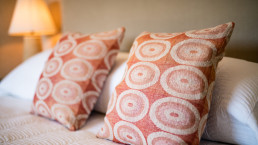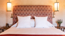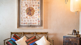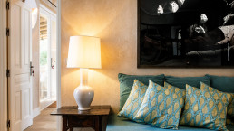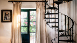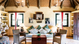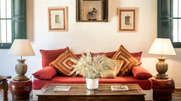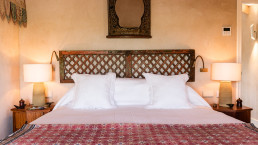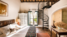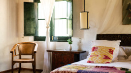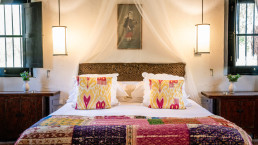 Die elf Maisonette-Zimmer sind um einen mit Bougainvillea bewachsenen Innenhof angeordnet, jedes mit eigener Veranda – perfekt, um dort morgens zu frühstücken. Die Inneneinrichtung trägt die Handschrift der Designerin der Hacienda, Kuky Mora-Figueroa, die Stoffe, Antiquitäten und Artefakte von ihren ausgedehnten Reisen durch Asien und Indien mitgebracht hat.