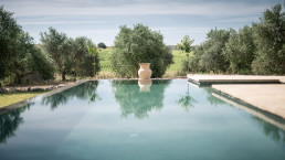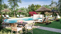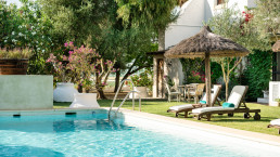 Die abgelegene Pool-Villa befindet sich inmitten eines 25 Jahre alten Olivenhains auf dem Gelände der Hacienda. Sie wurde im zeitgemäßen Stil für modernes Wohnen entworfen und bietet vollständige Privatsphäre gegenüber dem restlichen Anwesen. Die Villa besteht aus zwei Flügeln, jeder mit drei Schlafzimmern und eigenem Bad, einem Wohnzimmer und einer Küche. Ein markantes Triptychon des Künstlers Nick Devereux dominiert den Wohnbereich. Eine Veranda lädt zum Frühstück ein, während eine private, mit Stroh gedeckte Choza Raum für Mittag- und Abendessen bietet. Der private Garten und der Infinity-Pool bieten einen herrlichen Blick auf die andalusischen Sierras.