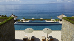 Der Name Amankila – „friedlicher Hügel“ – passt hier perfekt, das traumhafte Luxusresort auf einem Hügel an der Ostküste Balis vermittelt eine idyllische Atmosphäre zwischen zwei Landzungen. Das am Hang erbaute Amanresort bietet einen spektakulären Panoramablick und ausgezeichneten Service. Das Hauptgebäude mit Restaurant und dem auf 3 Ebenen erbauten Swimmingpool bilden den Mittelpunkt des Luxusresorts. Der private 400 m lange Strandbereich ist fein- und dunkelsandig und bietet einen privaten Beach Club, einen 41 m langen Pool, Wassersport und Beach Club Restaurant.