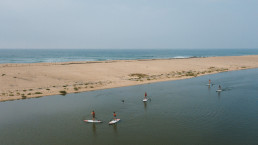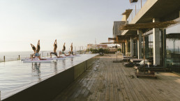 Das Herzstück des Noah Surf House ist das vielfältige Aktivprogramm. Eine eigene Surf- und SUP-Schule mit erfahrenen Lehrern, Yoga-Sessions, funktionelles Training, Skatepark und ein Infinity-Pool bieten für jedes Bewegungslevel etwas. Ergänzt wird das Angebot durch einen Dachterrassen-Whirlpool mit Meerblick, eine Bar mit entspannter Atmosphäre und einen liebevoll gepflegten Gemüsegarten mit Hühnern – alles Teil eines ganzheitlichen Lebensgefühls.