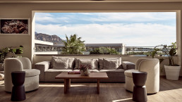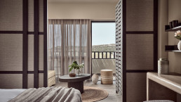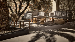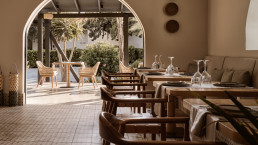 Olivenbäume spiegeln sich in einem Pool am Strand – hier werden Tapas, Snacks und Cocktails zu respektvoller Deep-House-Musik serviert. Außerhalb dieses paradiesischen Zufluchtsortes entdecken Sie eine karge Landschaft mit charmanten Dörfern, Bergtavernen und traditionellen Kaffeehäusern. Das natürliche, designorientierte Interieur spiegelt diese Stimmung wider und bringt die Natur ins Haus.