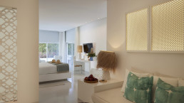 Die 55 individuell gestalteten Zimmer und Suiten sind modern ausgestattet und bieten höchsten Komfort. Sie verfügen über Klimaanlage, kostenfreies WLAN, Flachbild-TV, Safe, Minibar und Kaffeemaschine, viele mit Blick auf die gepflegten Gärten, die Pools oder die umliegende Landschaft. Für Gäste, die ein besonders privates und exklusives Erlebnis suchen, stehen Villen mit eigenem Pool, Solarium und persönlichem Butler zur Verfügung.