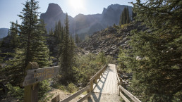 Ihr zertifizierter Bergführer zeigt Ihnen die umliegenden Gipfel und erzählt Spannendes über die Pflanzenwelt und Tierarten, die in den kanadischen Rocky Mountains zuhause sind.