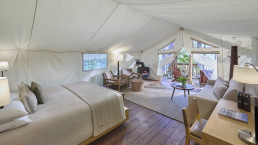 Die stilvoll ausgestatteten Luxus-Safari-Zelte bieten modernen Komfort inmitten unberührter Natur – mal direkt am Wasser, mal eingebettet in den alten Wald unter hohen Gipfeln. Das Herz der Lodge bildet das Haupthaus mit Bar, Gourmetrestaurant und einem voll ausgestatteten Spa-Bereich. Es erwartet Sie eine Auswahl an inkludierten sowie individuell buchbaren Aktivitäten: von geführten Wanderungen, Canyoning und Reitausflügen bis hin zu Tierbeobachtungen und kulturellen Erlebnissen mit lokalen indigenen Gastgebern.