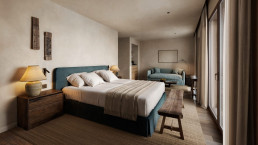 In unmittelbarer Nähe des Hafens liegen die fünf zweigeschossigen Madrague Häuser, die mit rustikaler Schlichtheit und authentischem provenzalischem Charme begeistern. Ideal für junge Familien bieten sie mit privatem Garten eine ruhige Rückzugsmöglichkeit bei gleichzeitigem Zugang zu allen Annehmlichkeiten des Hotels. Die Madrague Häuser mit einer Größe von 31 bis 42 Quadratmetern verbinden provenzalische Eleganz mit zeitloser Authentizität. Im Erdgeschoss befindet sich ein gemütlicher Wohnbereich, während im Obergeschoss ein Schlafzimmer mit Kingsize Bett liegt. Das Badezimmer ist mit einer Dusche und einem Waschtisch ausgestattet. Um eine besonders ruhige Atmosphäre zu gewährleisten, sind die Häuser für maximal zwei Erwachsene und ein Baby konzipiert.